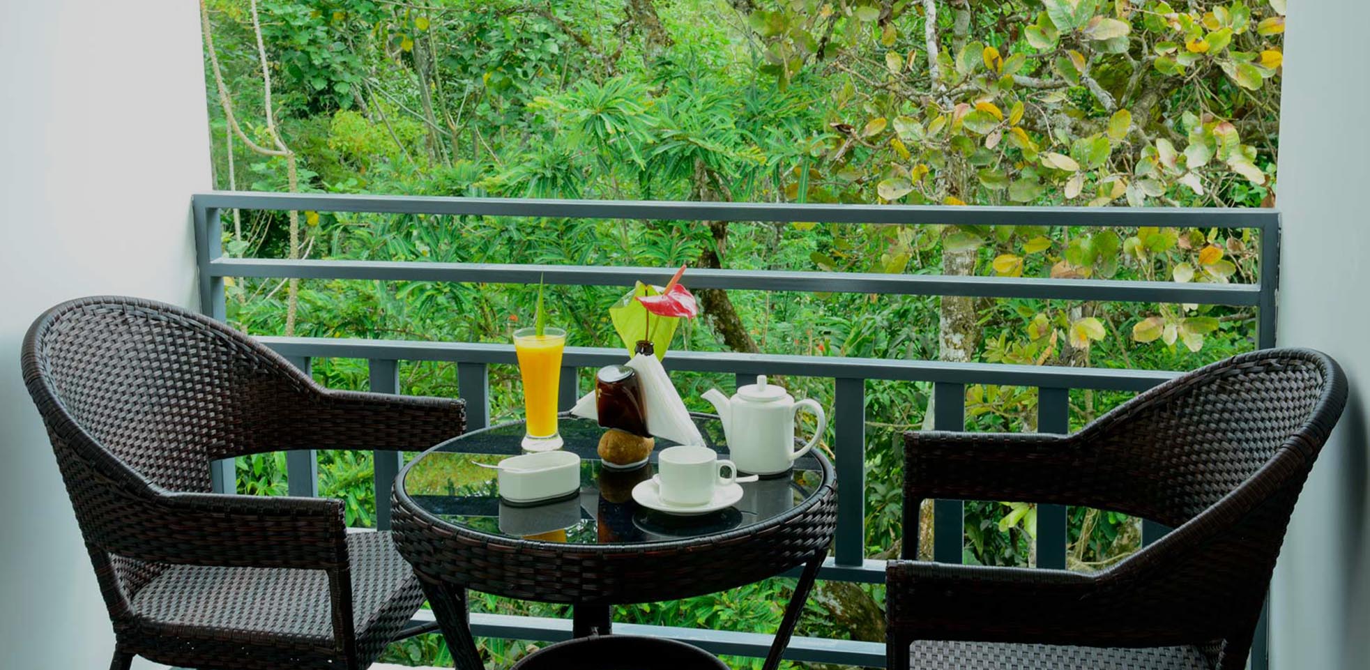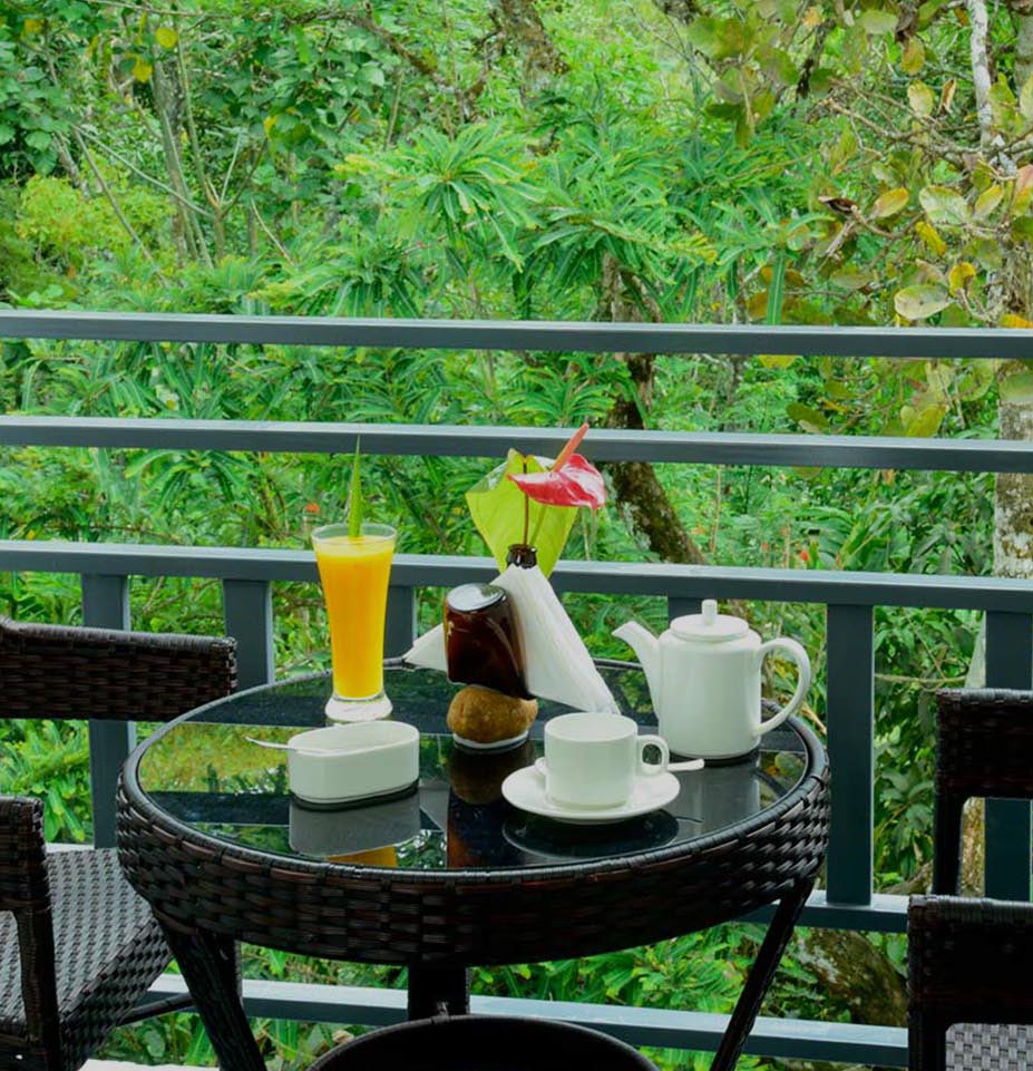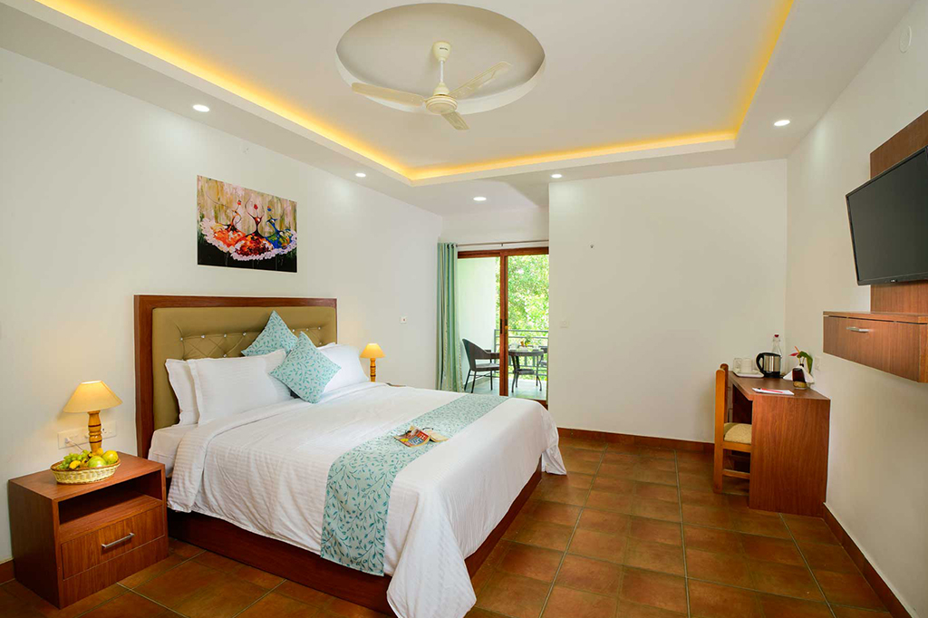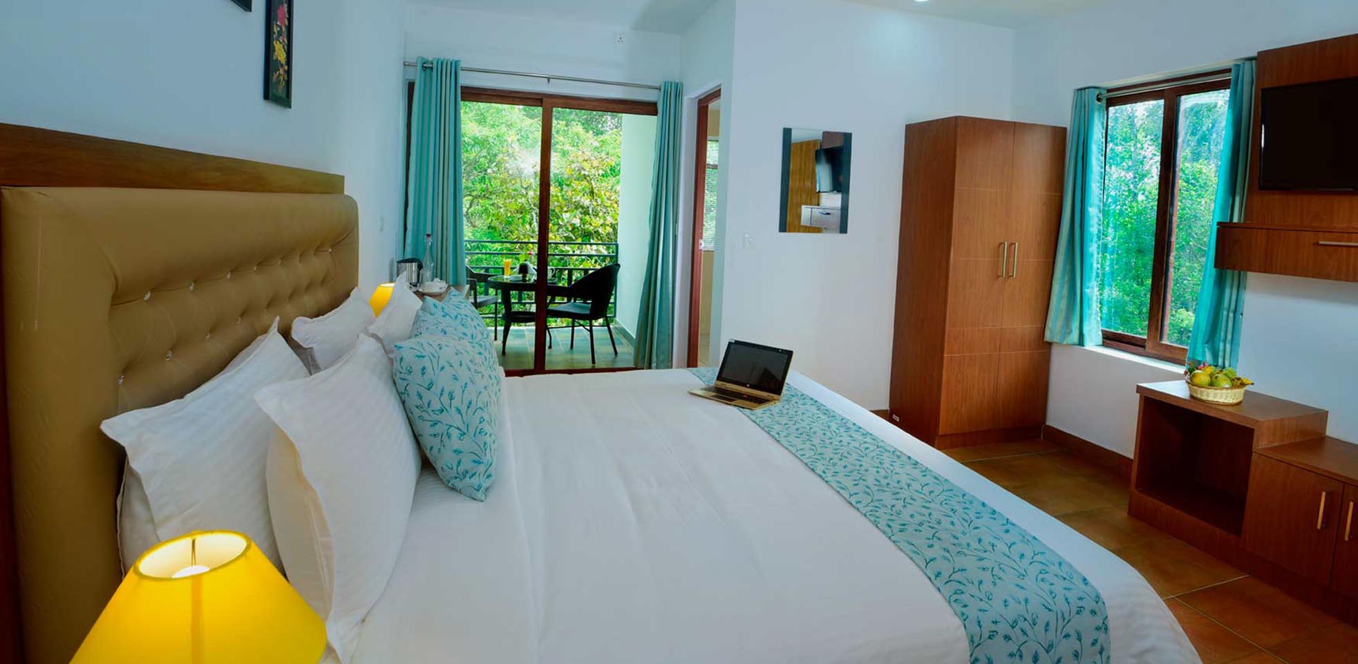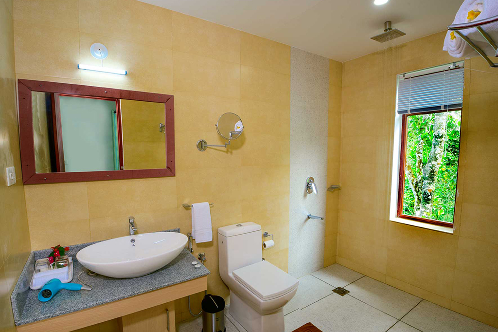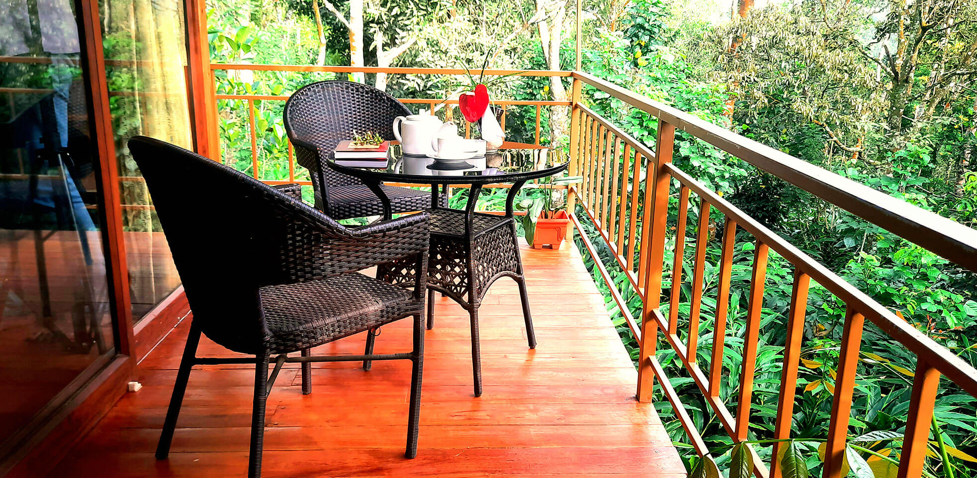 The plantation rooms are set to ignite the comfort of stay with its indoor space and features a King Size bed, work desk, large LED TV, tea-coffee amenities and a mini bar. All rooms come with a private balcony overlooking the spice plantation and trees.