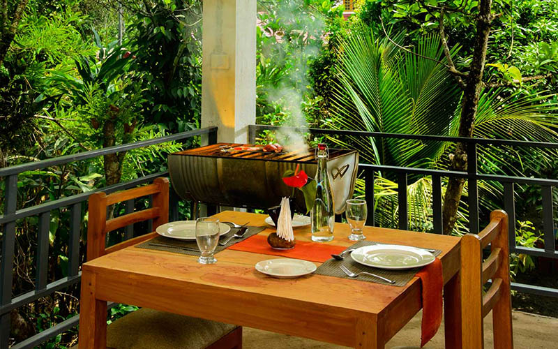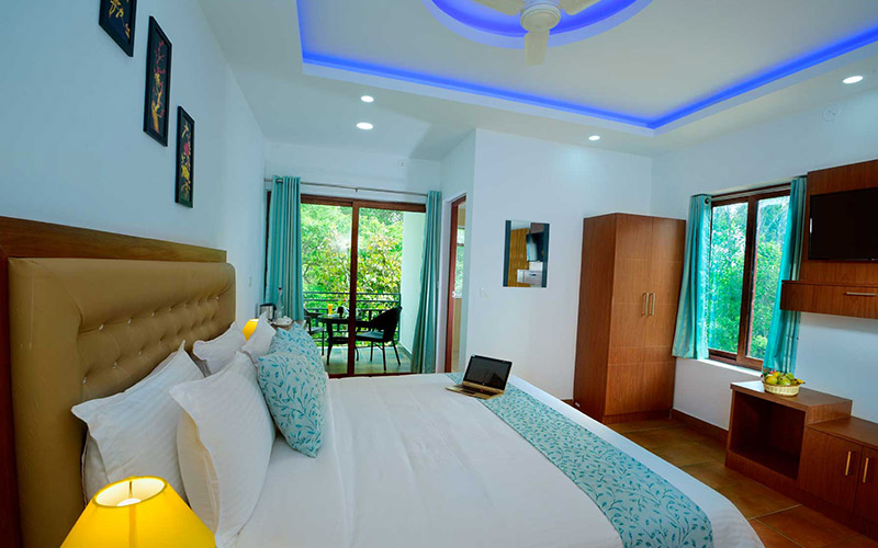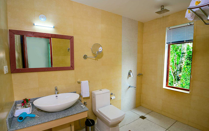 The plantation rooms are set to ignite the comfort of stay with its indoor space and features a King Size bed, work desk, large LED TV, tea-coffee amenities and a mini bar. All rooms come with a private balcony overlooking the spice plantation and trees. The bathroom is huge with a rain shower and amenities include bathrobes, slippers, luxury soaps, hair care and dental kits. Hair dryer can be provided on request.